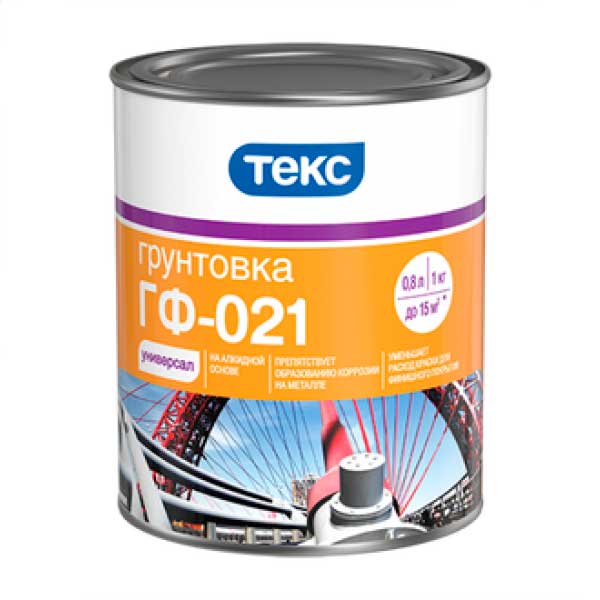 Антикоррозионная алкидная грунтовка Текс ГФ-021 класс «Универсал» в фасовке 1 кг. Применяется для грунтования преимущественно металлических поверхностей перед окраской алкидными эмалями и масляными красками внутри и снаружи помещения. Не является самостоятельным покрытием, может использоваться для кратковременной защиты металла от коррозии перед финишной окраской.