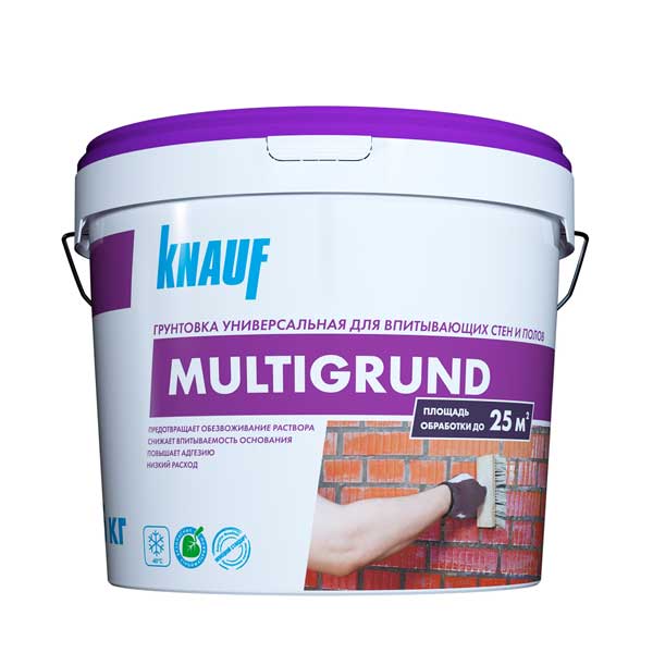 КНАУФ-Мультигрунд, в фасовке 5 кг — это грунтовка для впитывающих оснований, готовая к применению, быстросохнущая, паропроницаемая, на основе полимерной дисперсии. Предназначена для обработки поверхностей внутри и снаружи помещений: газо-и пенобетона, керамического и силикатного кирпича, керамзито- и шлакоблоков, гипсовых и цементных штукатурок; бетонной, цементной и гипсовой стяжки. Эффективно снижает и регулирует впитывающую способность основания, способствует равномерному схватыванию раствора гипсовых и цементных смесей.