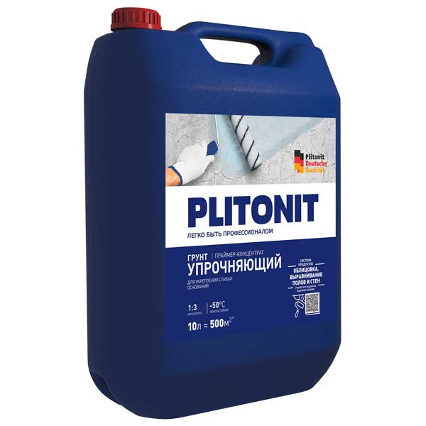 Плитонит грунт праймер-концентрат 1:3, в фасовке 10 литров, — это грунтовка глубокого проникновения на акрилатной основе для внутренних и наружных работ.