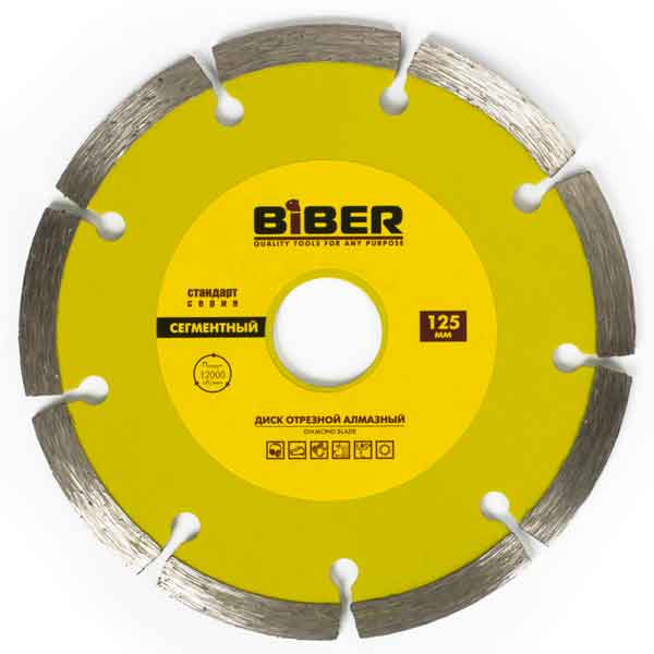 Диск алмазный сегментный Бибер 125х22.2х20 мм, количество сегментов 9. Используется с углошлифовальными машинами, электрическими плиткорезами и штроборезами.