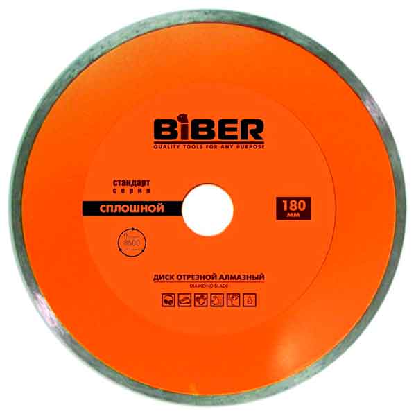 Сплошные диски применяются для обработки хрупких и тонких материалов, таких как фарфор, керамика, мрамор, а также для получения абсолютно гладкого среза в кирпиче, кафеле и т.п. Сплошные диски легко перегреваются и поэтому требуют дополнительного водяного охлаждения при работе.