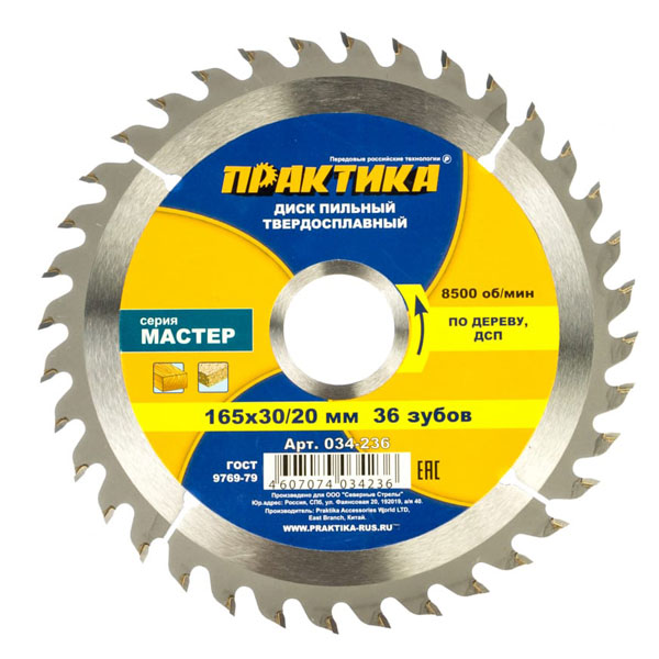 Диск пильный по дереву 165х30/20 мм РАКТИКА 034-236 используется для чистой и точной распиловки заготовок из древесины и деревосодержащих материалов. Устанавливается на электропилу дисковую.