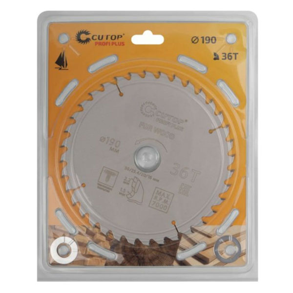 Диск пильный по дереву Cutop Profi plus c тефлоновым покрытием 36Т 190х1.5/2.2 х 30/25.4/20/16 мм