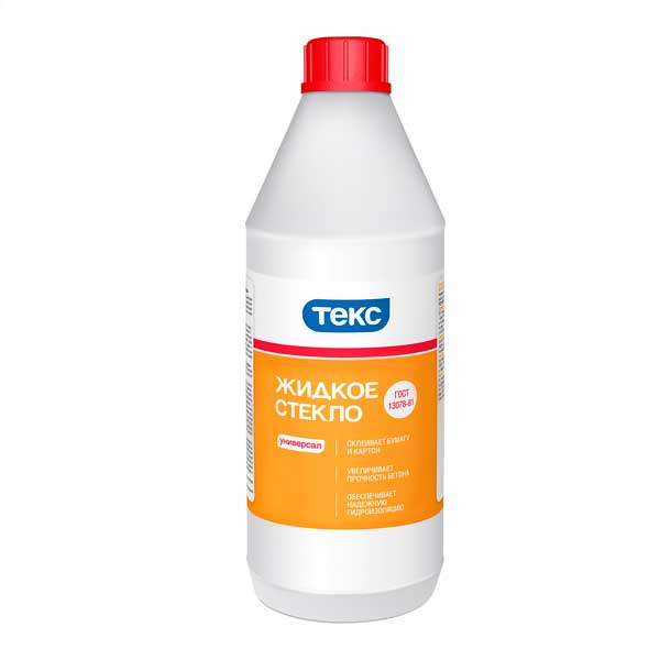 Текс Универсал, 1.3 кг — жидкое стекло для гидроизоляции. Состоит из двуокись кремния, органических и неорганических солей. Расход средства составляет 1 кг на 3-7 кв.м.