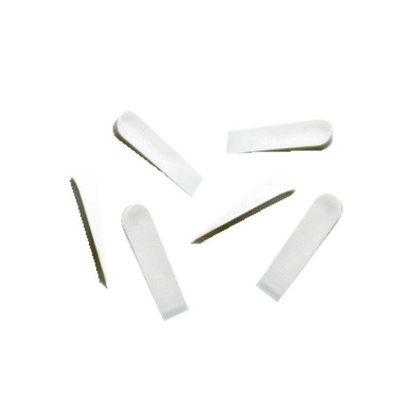 Предназначены для выравнивания керамической плитки относительно поверхности и обеспечения одинаковой ширины межплиточных швов. Их использование особенно эффективно при неровных стенах и больших перепадах в укладочных швах. Размер клиньев выбирается в зависимости от типа отделочных работ, от тяжести и габаритов плиточных материалов. После полного высыхания раствора клинья вынимают, а швы замазывают специальной затиркой.