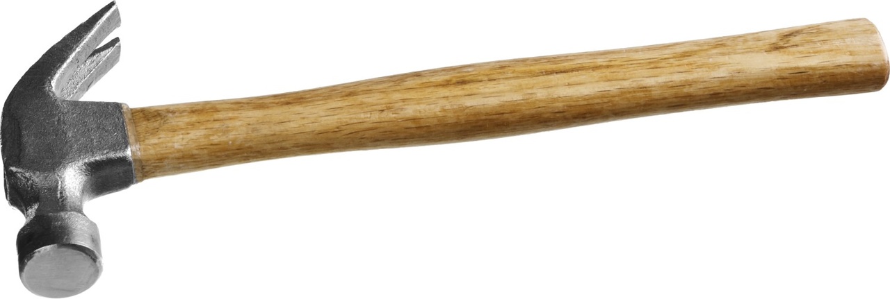 Самый простой молоток-гвоздодер 0.6 кг, как правило используется для забивания гвоздей, разбивания керамической плитки, тонкого слоя бетона, придания формы металлическим трубкам, для множества других целей. Имеет деревянную рукоятку.