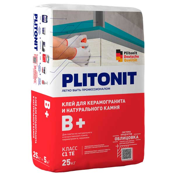 Клей для плитки из керамогранита, натурального и искусственного камня, керамики Плитонит В+