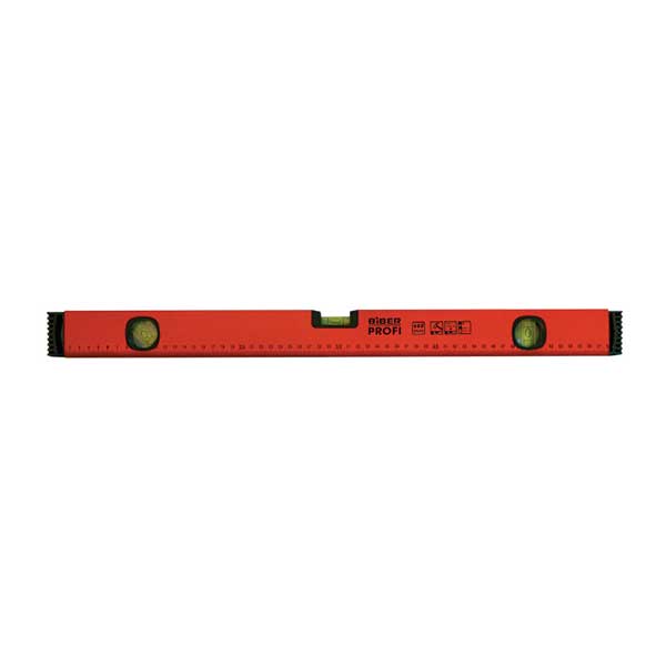Уровень Biber Профи ударопрочный 1500 мм 3 глазка используется для проверки и определения горизонтальных и вертикальных поверхностей с допустимой погрешностью 0,057 градуса. Изготовлен из алюминиевого профиля. Усиленная конструкция с фрезерованной поверхностью и ударопрочными глазками. Оснащен измерительной шкалой.