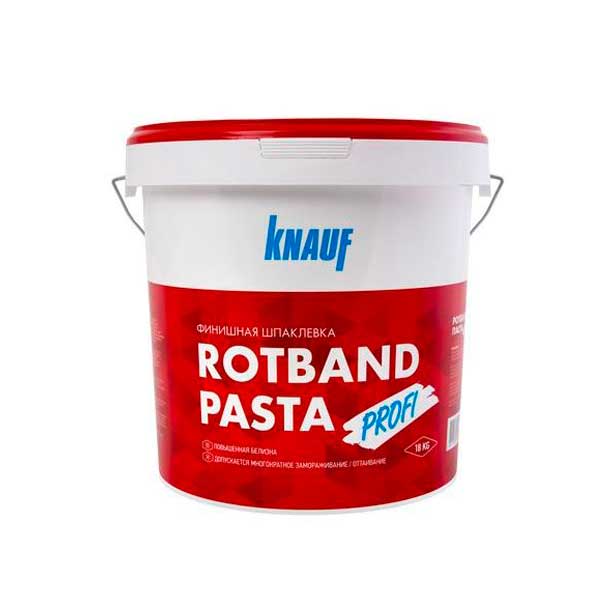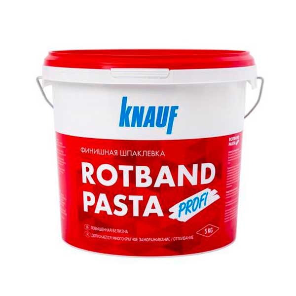 КНАУФ-РОТБАНД ПАСТА ПРОФИ — готовая пастообразная финишная шпаклевка на виниловой основе. Обладает повышенной белизной, адгезией и трещиностойкостью. Идеально подходит для тонкослойного (на сдир) шпаклевания поверхности. За счет высокой пластичности легко разравнивается и отлично заполняет мелкие неровности. После высыхания поверхность готова под финишное покрытие краской или обоями. Применяется внутри помещений для финишного шпаклевания поверхности гипсокартонных или гипсоволокнистых листов, оштукатуренных и бетонных поверхностей, пазогребеневых плит, стеклохолста при подготовке под высококачественную окраску, оклейку обоями, перед нанесением венецианской штукатурки и других финишных материалов.