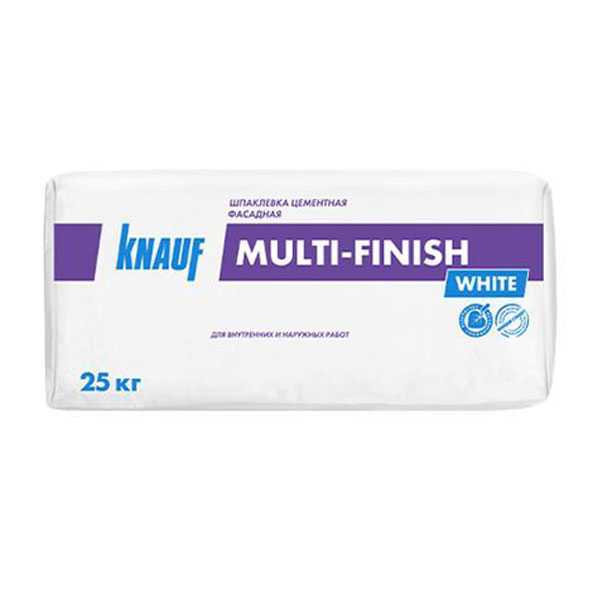КНАУФ Мульти-финиш «белый» — фасадная шпаклевка на основе белого цемента с заполнителем, полимерными добавками, и армирующим волокном.
